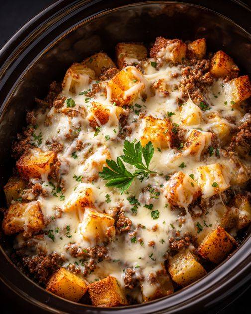 Slow Cooker Cheesy Beef and Potato Casserole