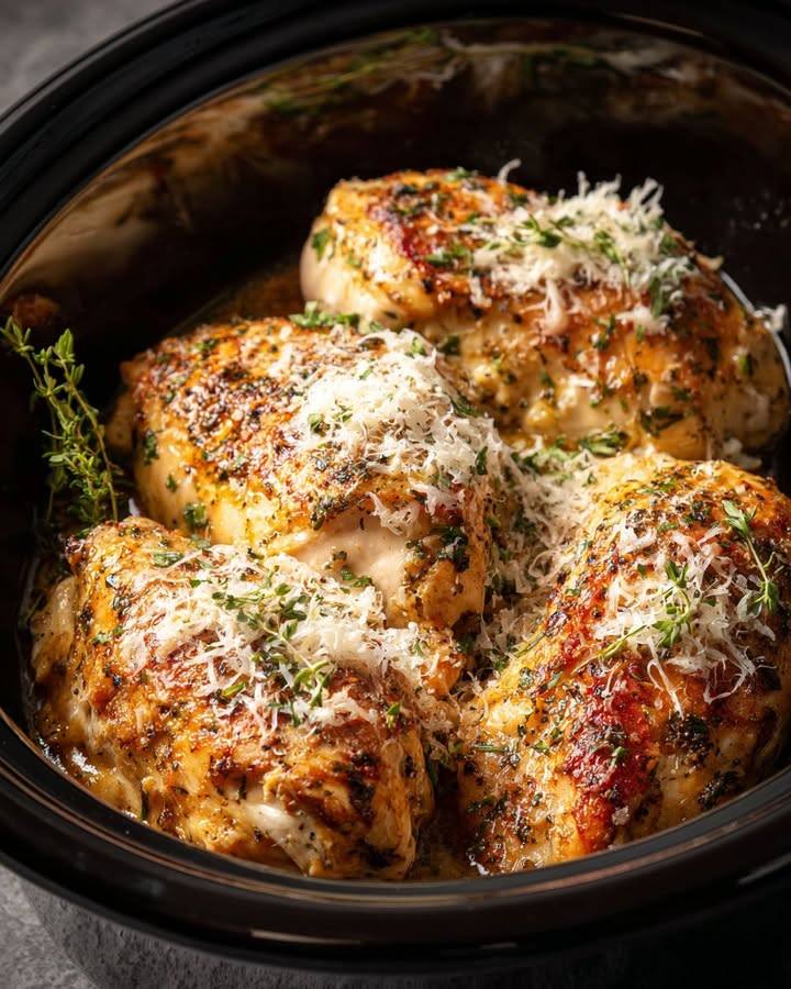 Garlic Parmesan Chicken is a simple yet flavorful dish that combines the fragrant aroma of garlic with the rich, savory taste of Parmesan cheese. This dish is perfect for busy weeknights when you want a homemade meal without spending hours in the kitchen. Slow cookers are a fantastic tool for this recipe, allowing you to set it and forget it, letting the flavors meld together beautifully over time. The slow cooker method ensures the chicken remains tender and juicy, absorbing all the delicious flavors. This dish has its roots in Italian cuisine, where garlic and Parmesan are staple ingredients, often used to enhance meats, pastas, and vegetables. It’s a comforting dish that will fill your home with a delightful aroma, and it’s sure to become a family favorite.